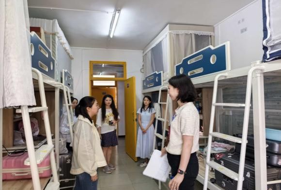 随后,法学院党委副书记陈婷同辅导员前往新生宿舍,关心宿舍情况,了解学生需求。